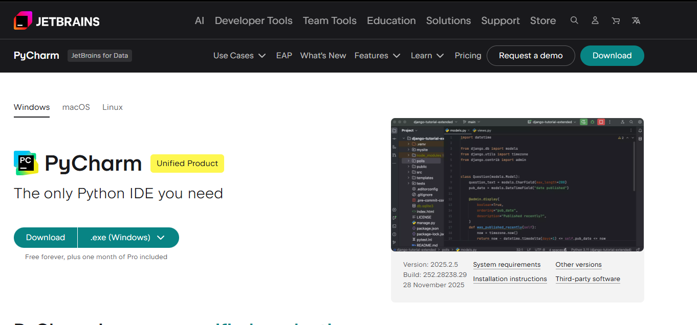 🖥️ 步骤一:下载 Pycharm 2025.2.5 最新版